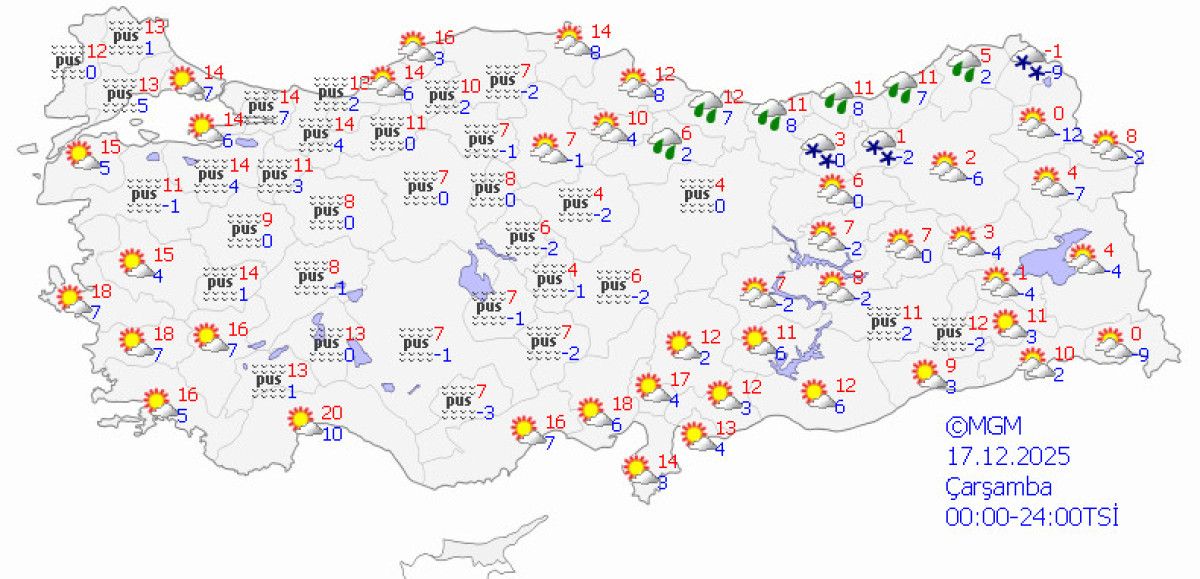 İç ve doğu kesimlerde sıcaklıklar 0-10 derece arasında, batıda 15-20 derece civarında.