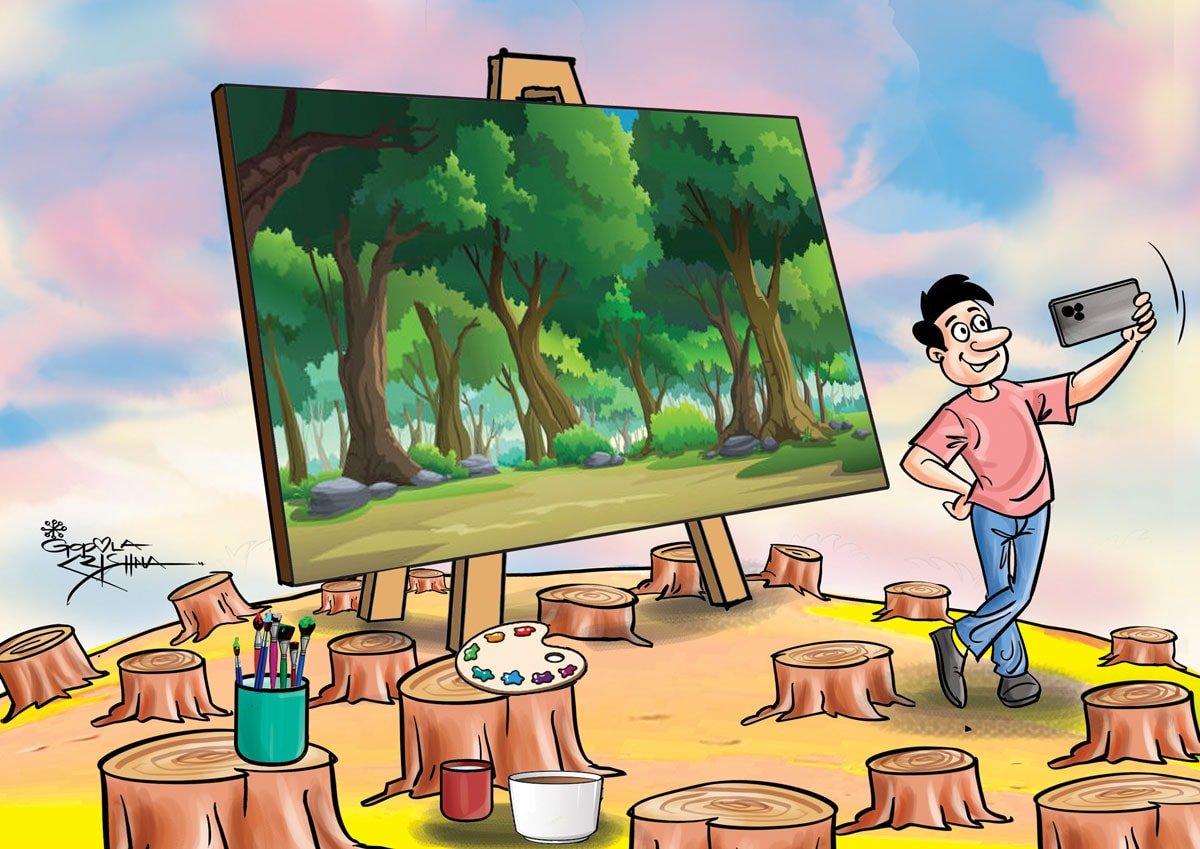 Seçkide, dünyanın farklı noktalarından sanatçıların ürettiği karikatürler aracılığıyla ormanların yaşam açısından taşıdığı kritik önem, ekosistemlerin kırılgan doğası ve umudun dönüştürücü etkisi ele alınıyor. Sözün ötesine geçen görsel dil, doğanın karşılaştığı tehditleri ve küllerinden yeniden var olma ihtimalini izleyiciye güçlü bir duygusal ve düşünsel deneyim olarak aktarıyor.