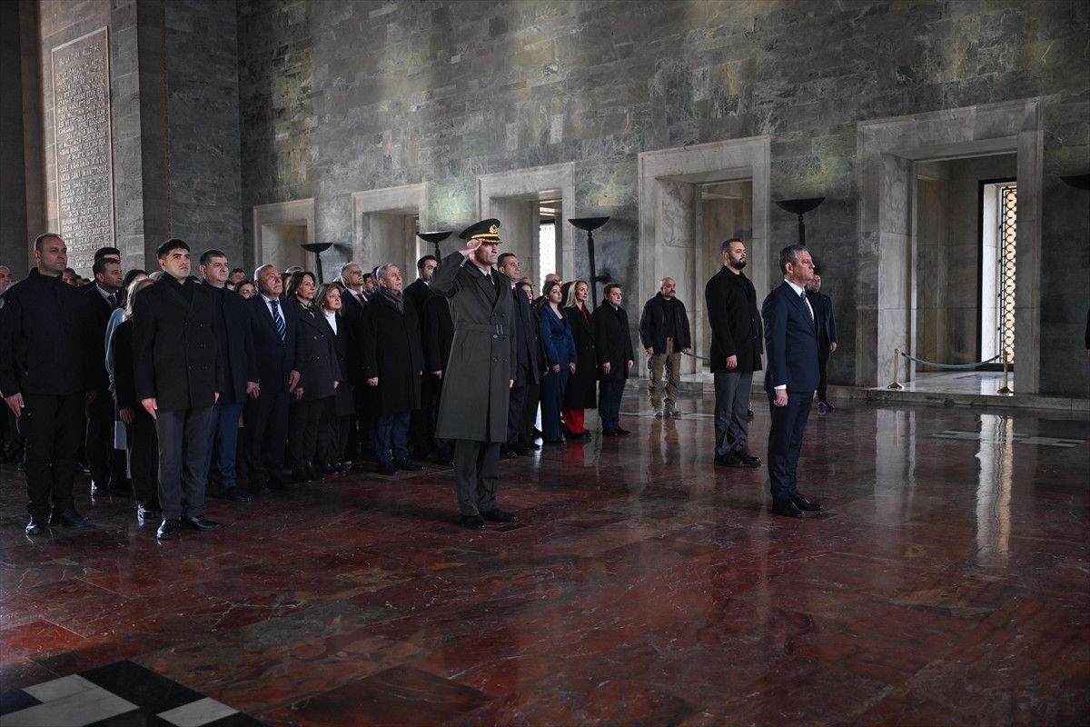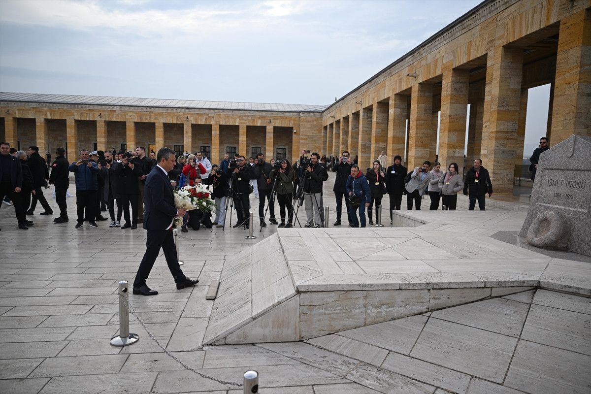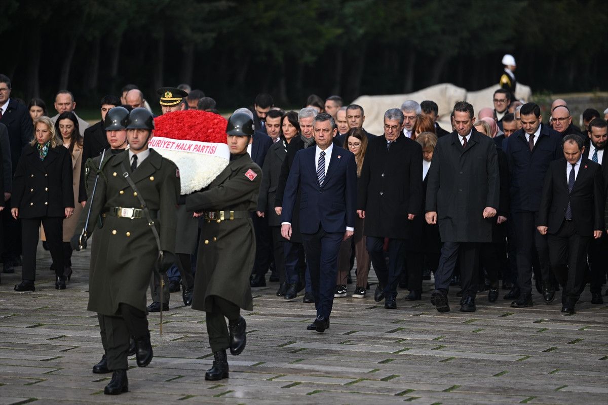 Özel, beraberindeki PM, YDK üyeleri ve milletvekilleriyle Aslanlı Yol’dan yürüyerek Atatürk’ün mozolesine çelenk bıraktı, saygı duruşunda bulundu.