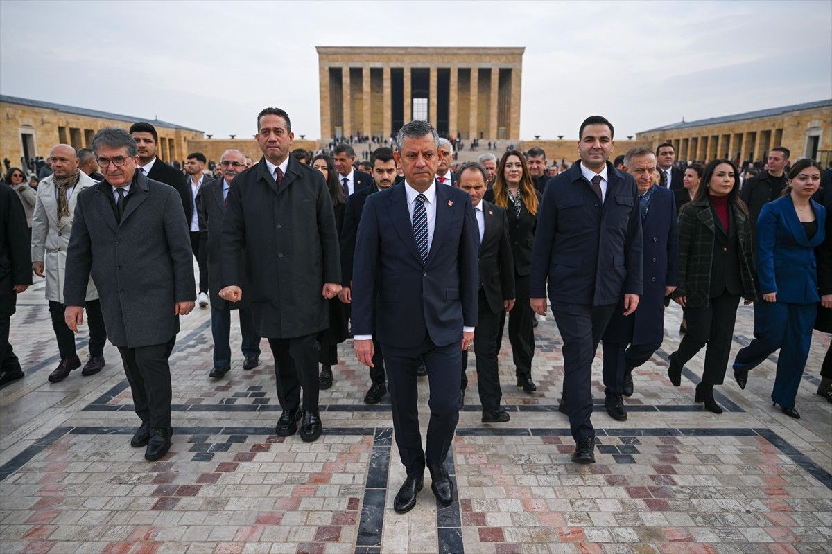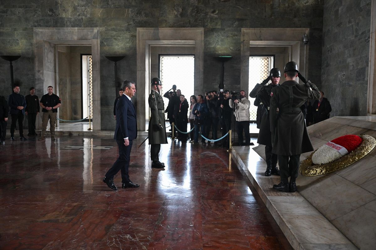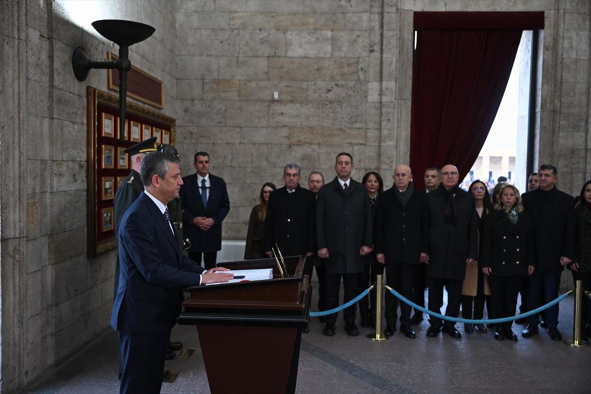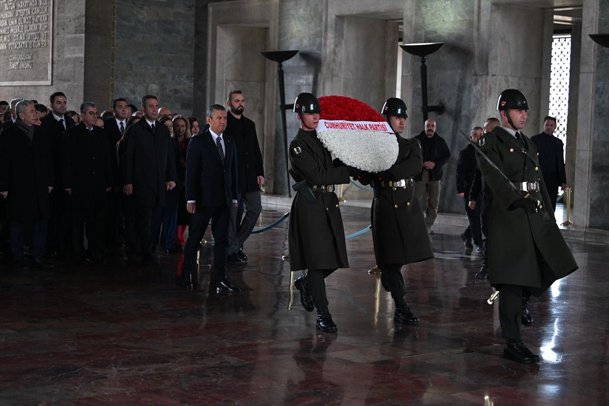 Özel, beraberindeki PM, YDK üyeleri ve milletvekilleriyle Aslanlı Yol’dan yürüyerek Atatürk’ün mozolesine çelenk bıraktı, saygı duruşunda bulundu.
